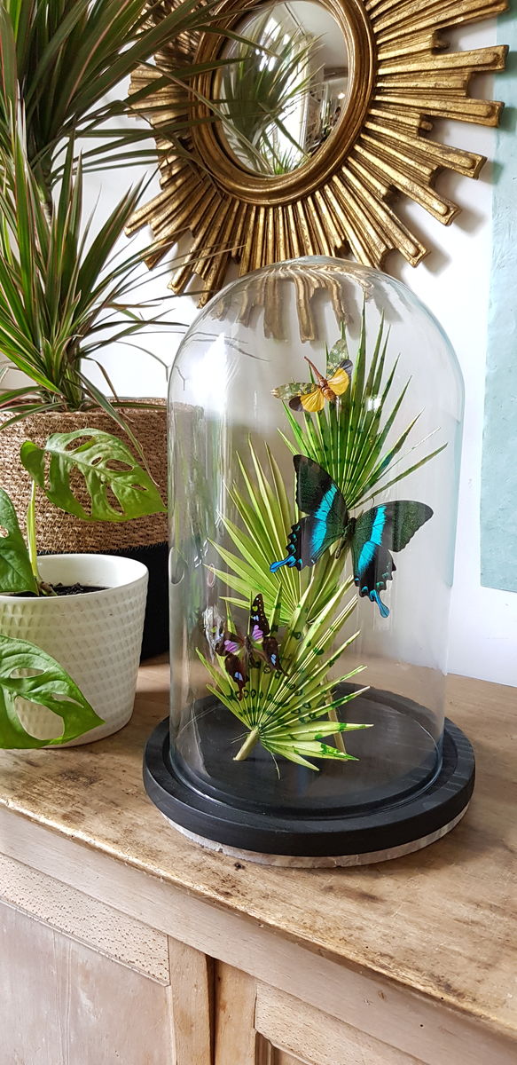 Cloche en verre papillons des champs